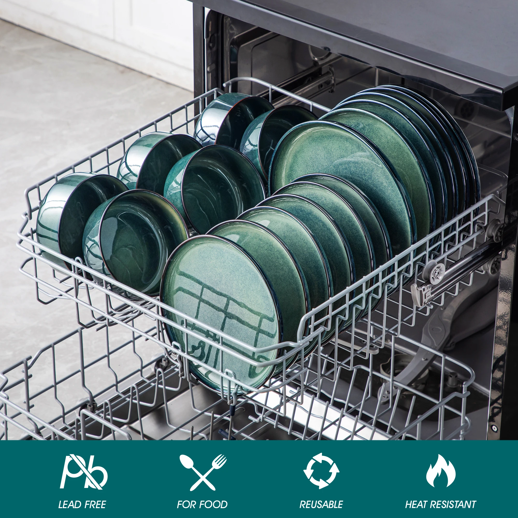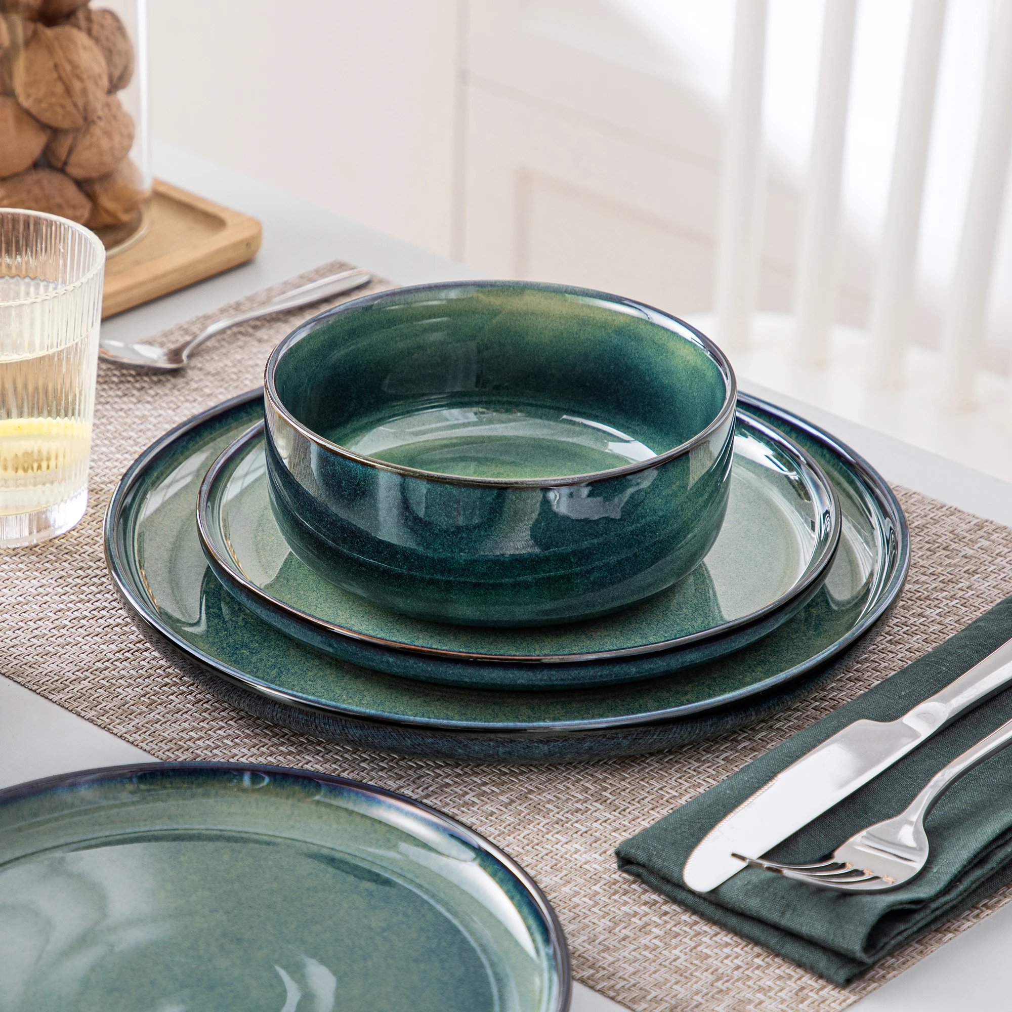 vancasso 12/18 Piece Green Reactive Glaze Dinnerware Set Scratch Resistant Stoneware Set with 4/6pcs Dinner plate/Dessert/Bowl